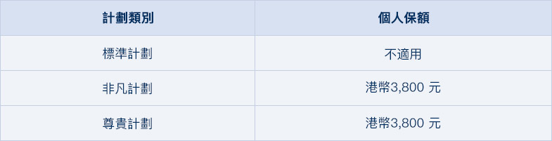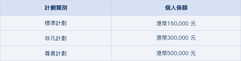 就全年旅遊保單而言,上述分項限額為每保單年度的限額。